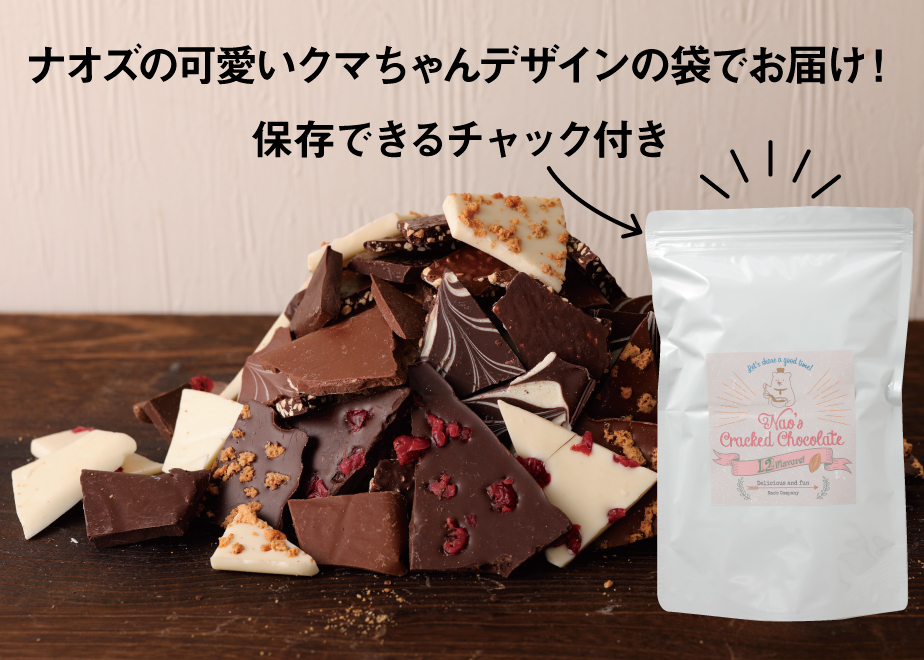 疲れた日や頑張った自分へのご褒美に、お好きなフレーバーでほっと一息つきませんか。ボリューム満点、ナオズカンパニーの割れチョコは、美味しい♪楽しい♪おやつタイムにぴったりです。